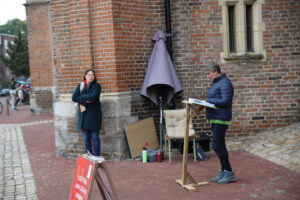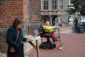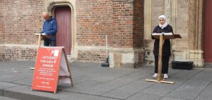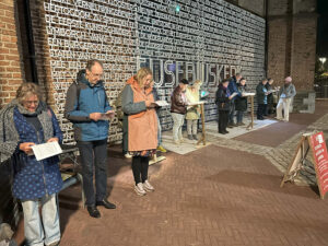 In de aanloop naar de verkiezingen nodigen we in Arnhem iedereen uit, om op zaterdag 25 oktober van 12 tot 15 uur naar de Turfstraat-zijde van de Eusebiuskerk te komen. In deze drie uur lezen we met zoveel mogelijk mensen tegelijkertijd namen voor. We getuigen van het leed, en geven uiting aan gevoelens van afschuw, droefenis en onmacht, en in deze verkiezingstijd hopen we dat mensen zich bezinnen op hun keuze.
