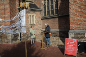Daarnaast hebben we een kunstenaar gevraagd om hier met een artistieke werkvorm het lezen van de namen te verbeelden.