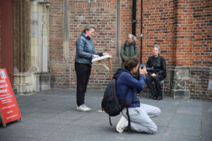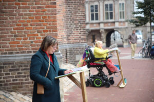 – 15 minuten stilstaan en luisteren naar de namen (daarmee steun je ook de lezer)