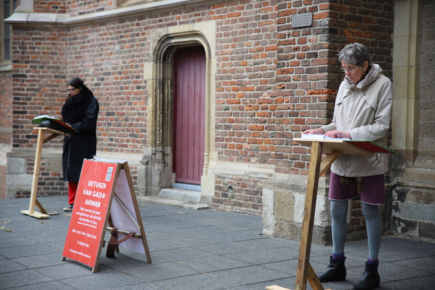 Van donderdagochtend 25 tot en met zaterdagavond 27 september hebben inwoners van Arnhem dag en nacht de namen voorgelezen van de mensen die in Gaza zijn gedood; van zowel de Israëlische slachtoffers van 7 oktober 2023 als de Palestijnse slachtoffers van toen en nadien. Ruim 60 uur achter elkaar.