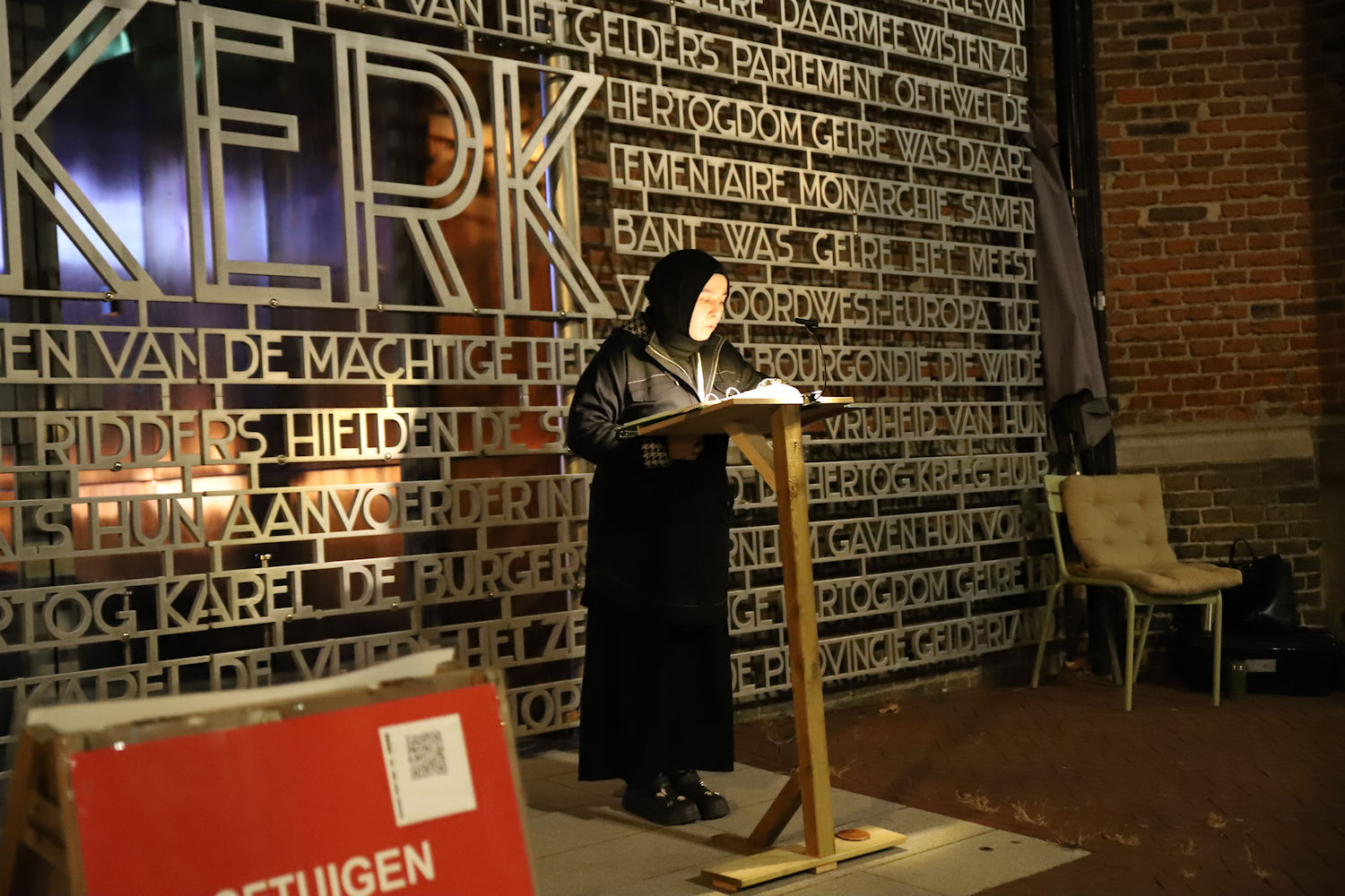 In het zicht van een genocide vroegen we ons af: wat kunnen we doen? Niet veel, maar we kunnen opstaan als getuigen. Via media en online kanalen bereiken ons voortdurend beelden en verhalen. In die zin is iedereen die meekijkt een getuige. Wij kiezen ervoor stil te staan bij de verloren mensenlevens — in waardigheid, in stilte. Je zou het ook een ritueel, gedenking of gebed kunnen noemen. Maar geen herdenking, of verwerking want het is helaas nog niet voorbij.