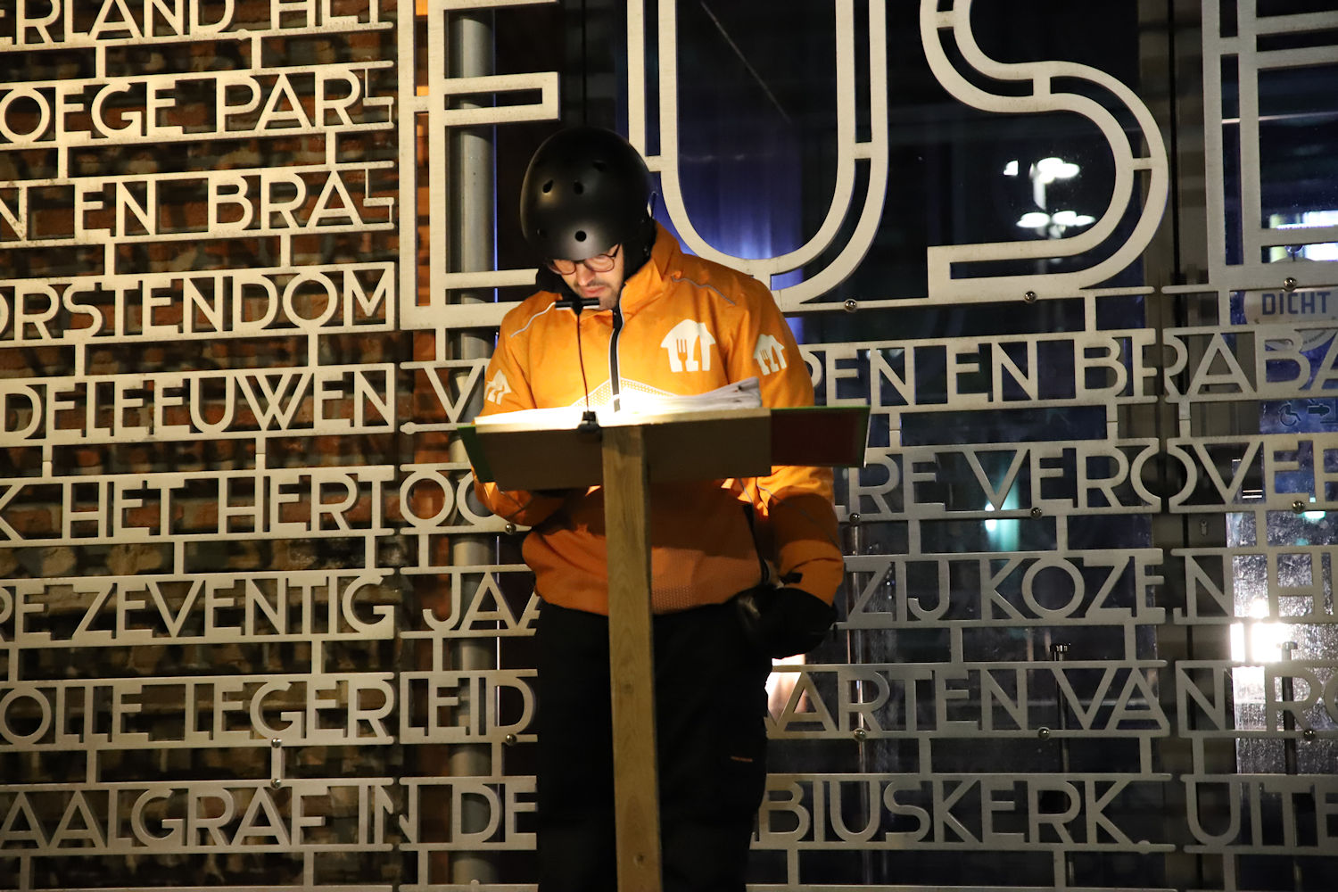 – 15 minuten stilstaan en luisteren naar de namen (daarmee steun je ook de lezer)