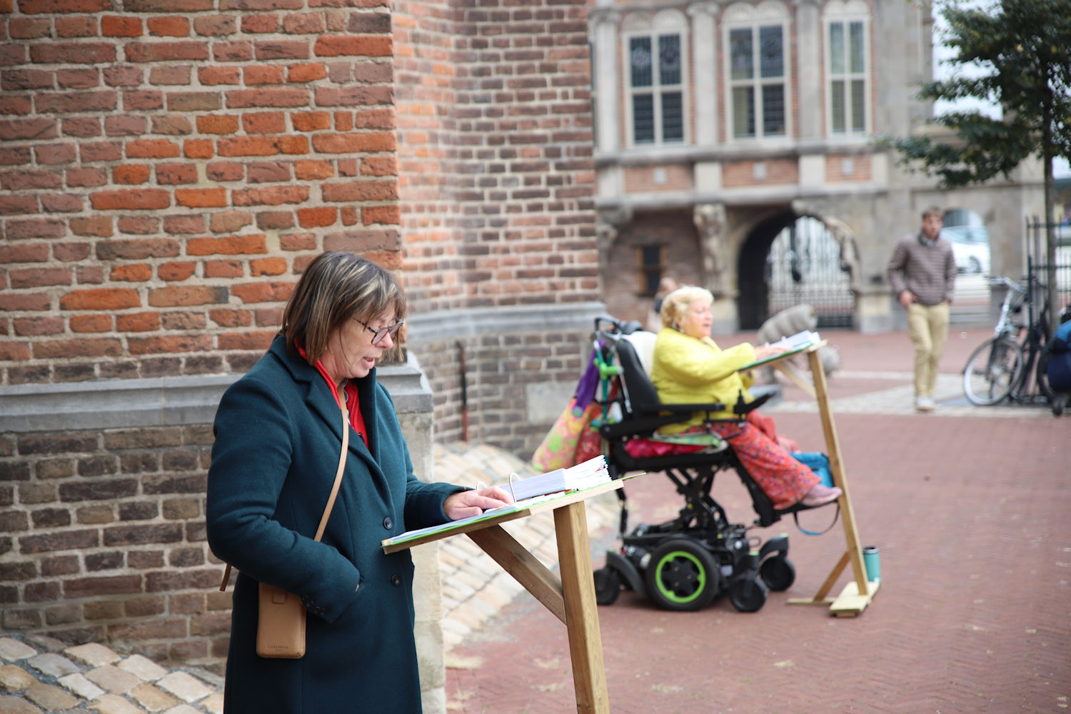 In de aanloop naar de verkiezingen nodigen we in Arnhem iedereen uit, om op zaterdag 25 oktober van 12 tot 15 uur naar de Turfstraat-zijde van de Eusebiuskerk te komen. In deze drie uur lezen we met zoveel mogelijk mensen tegelijkertijd namen voor. We getuigen van het leed, en geven uiting aan gevoelens van afschuw, droefenis en onmacht, en in deze verkiezingstijd hopen we dat mensen zich bezinnen op hun keuze.